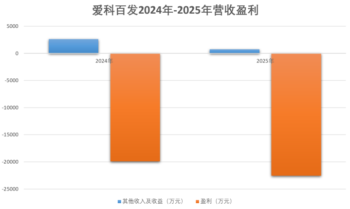 最新招股书泄露,2024年至2025年两个管帐年度,爱科百发营收端捏续下滑,其他收入及收益从2630.5万元跌至757.4万元,同比降幅高达71.2%;损失端捏续扩大,2024年净损失1.974亿元,2025年增至2.278亿元,两年累计损失超4.25亿元。