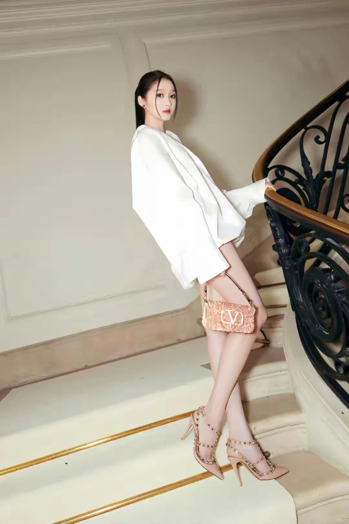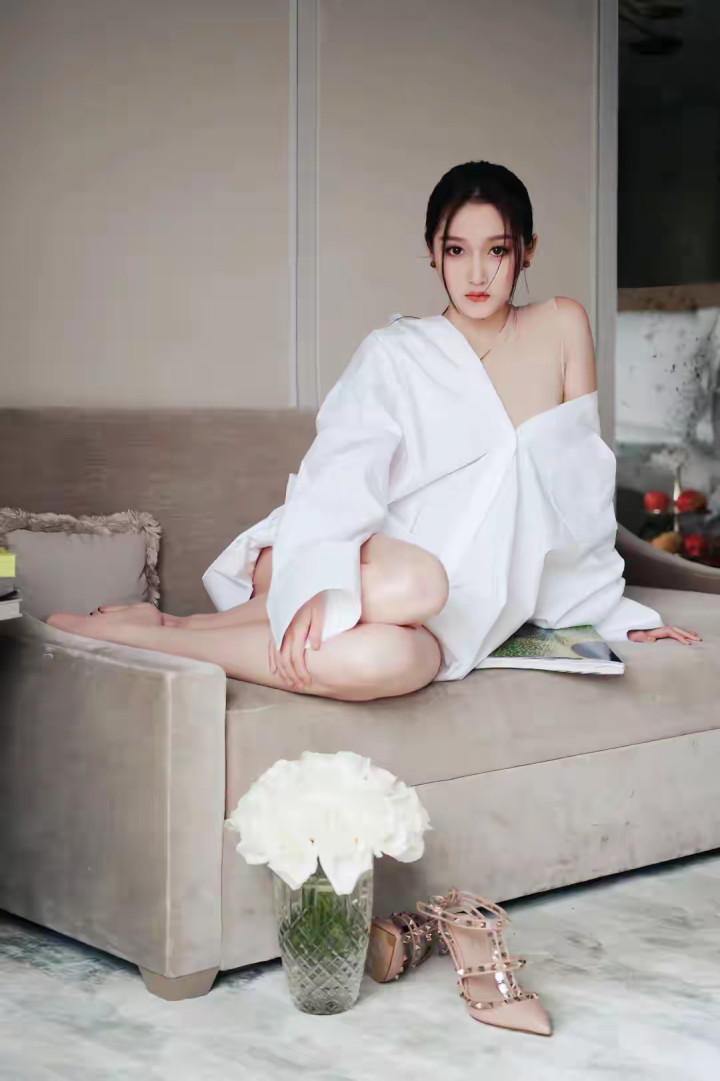 > M6体育app 关晓彤华伦天奴+大长腿 , 光着脚丫, 坐在沙发上皮肤皎洁 。