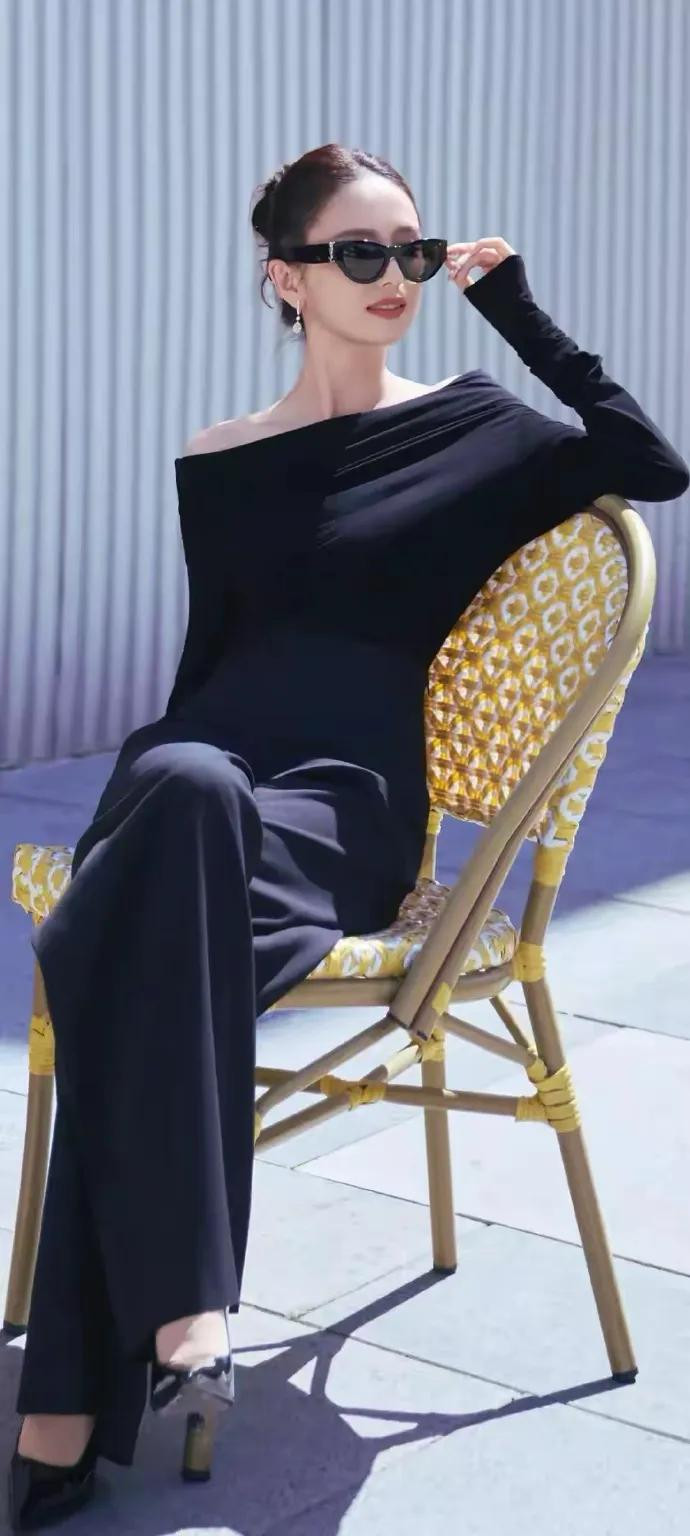 M6体育app官网 佟丽娅身传玄色露肩上衣搭配玄色西装裤, 这也太先锋“拉风”了吧