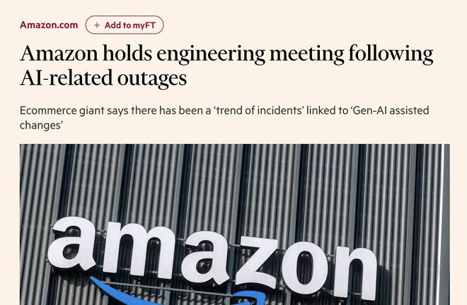 据《金融时报》等爆料,这家电商巨头本周二蹙迫调遣了名为本周商店技能(TWiST)的里面会议级别,条目全员强制参加,以此来深度复盘近期由AI代码激发的一系列停机事故。