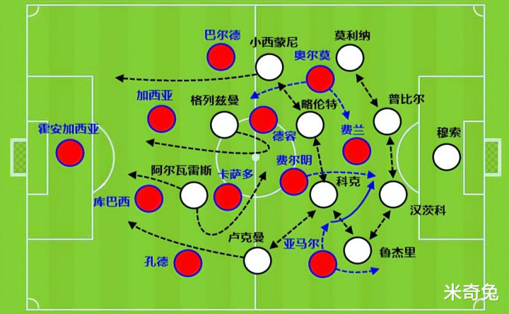 是以巴萨笃定要幸免主动减轻左边锋的退防智商,同期要加强中场的约束。在这个念念路上,让费尔明打左边锋,奥尔莫打前腰会是一个好倡导。这么一来,巴萨更像是5名中场,哪怕费尔明提神意志有一定的欠缺,然则他在左边锋位置上的积极性,不错弥补不少东西。