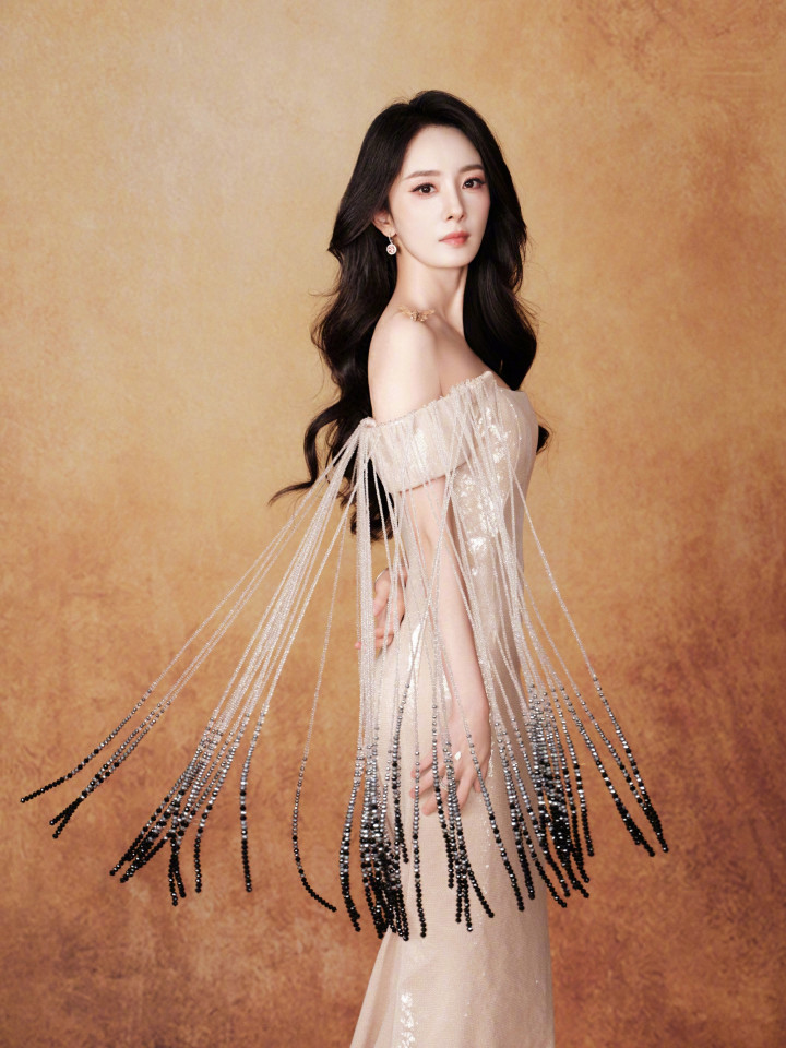 M6体育app官网 杨幂流苏银杏色抹胸连衣裙