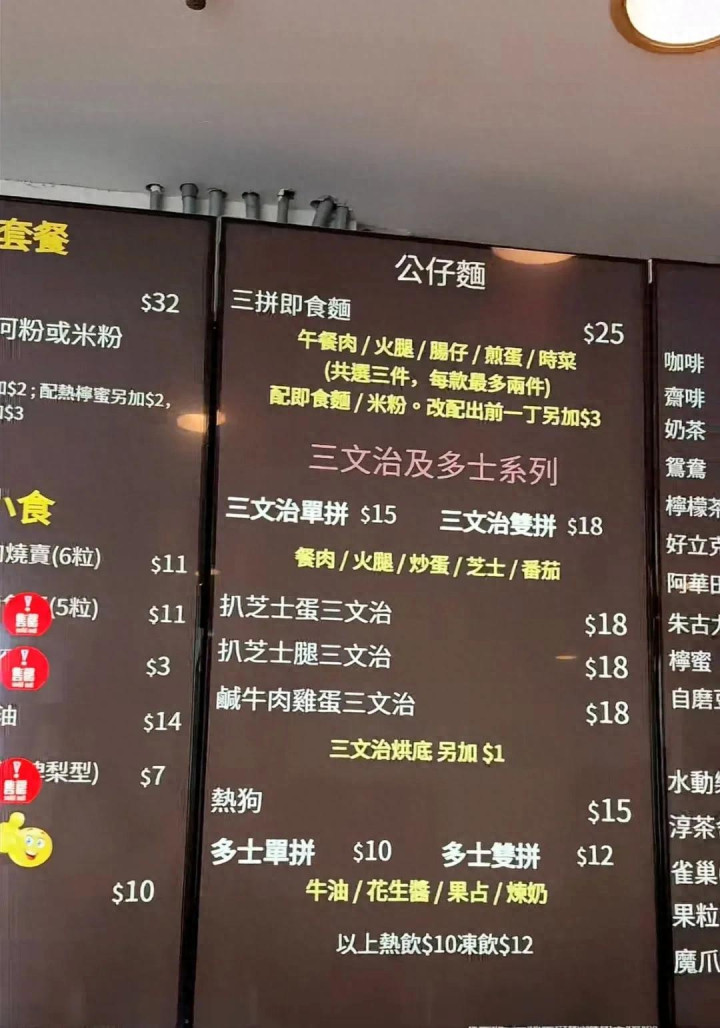 片断所见,银河国际游戏平台官网在TVB饭堂点一份杂锦车仔面只需32元连热饮,三餸即食面卖25元,阿滕口中的名物扒芝士腿治也独一18元,烧卖就11元6粒,比市面餐厅低廉,M6体育app官网就连内地网民齐说合算。