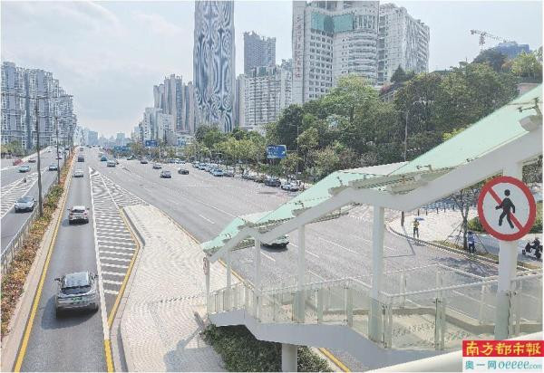 泥岗西路一座“想象奇怪”的东说念主行天桥。