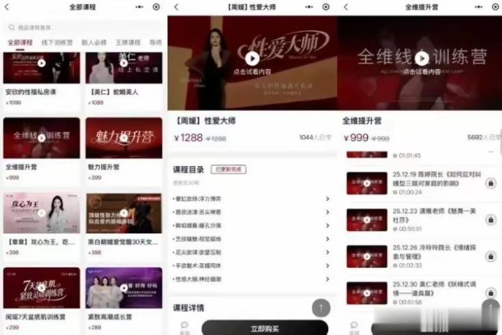 她此次复出主打卖“女性成长”课程,腐臭路一经那些,教女生若何劝诱男东谈主,若何高嫁之类。最贵的导师班要8万8,说白了即是教你若何收别东谈主的钱,跟传销通常。当年几年她靠这门营业赚了至少2400万,找她上课的齐是念念走捷径的女生,要么念念当小三,要么念念找个有钱老公。