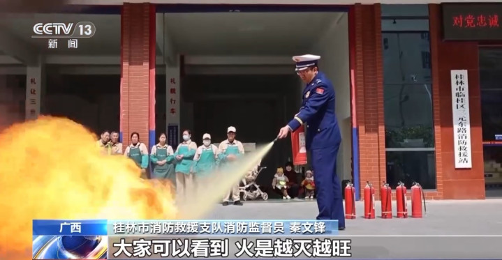 随后,消防员使用及格的熄灭器进行测试,火势很快就被扑灭。据先容,熄灭器的熄灭着力,取决于里面充装的熄灭剂。