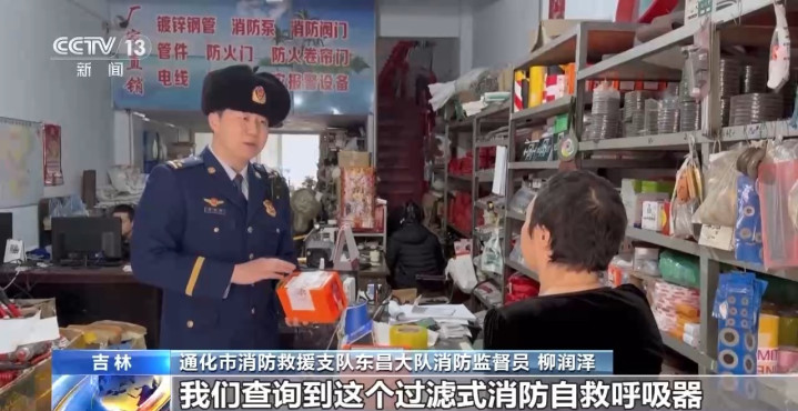通化市消防营救支队东昌大队消防监督员柳津润:进程消防居品信息网的查询,查询到这个过滤式消防自救呼吸器莫得强制认证文凭,是以你这是一个分歧格的消防居品,要立即更换。
