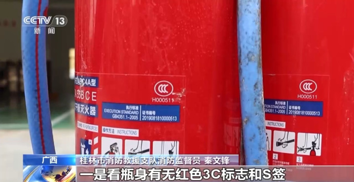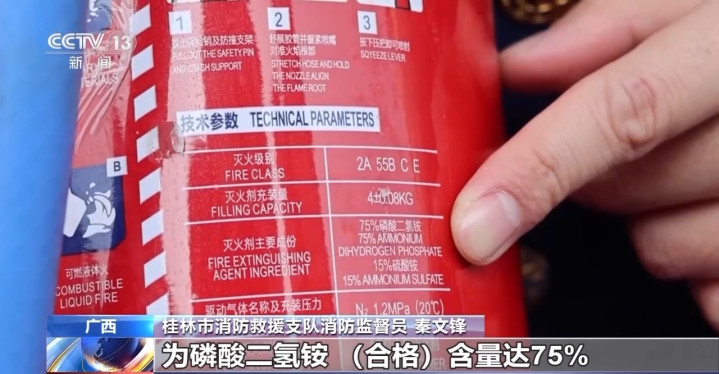 桂林市消防营救支队消防监督员秦文锋:我左手边的是咱们恰当国度圭臬的及格熄灭器,右手边是咱们从市集上收缴上来的分歧格熄灭器,率先咱们试一下分歧格的熄灭器,它熄灭剂(磷酸二氢铵因素)唯有20%。