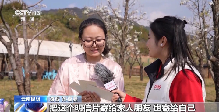 搭客孙嘉蔓:把这个明信片寄给家东谈主一又友。也寄给我方。一年之计在于春,但愿不错好好责任,然后像这满园春色不异,有一个很好的收成。