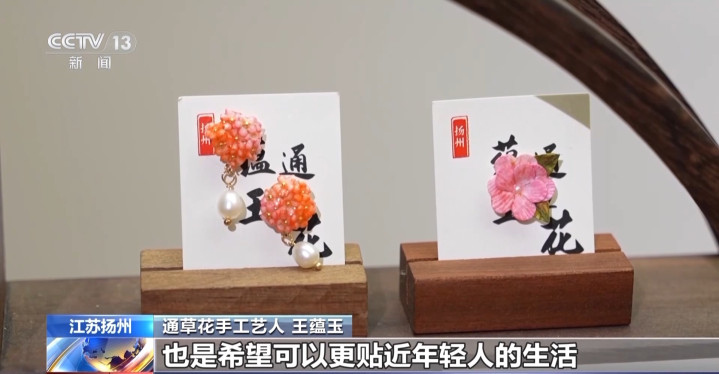通草花手工艺东谈主王蕴玉:咱们把柄最近的季节推出了一些像雪柜贴、胸针、发簪,还有咱们的耳环等一些作品,但愿不错更迫临年青东谈主的活命,让年青东谈主可爱。