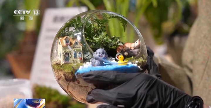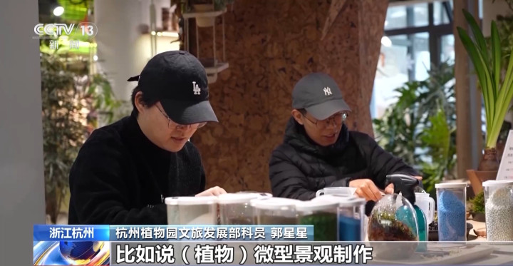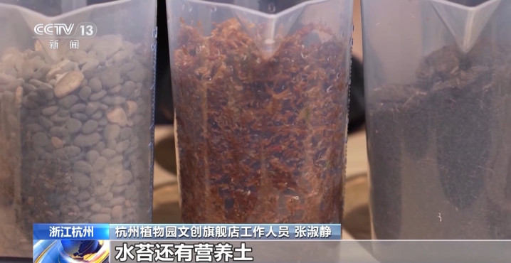 杭州植物园文创旗舰店责任主谈主员张淑静:像这么一个植物微景不雅,咱们会需要瓜代铺上碎石、水苔还有养分土,然后遴荐我方可爱的植物进行搭配。