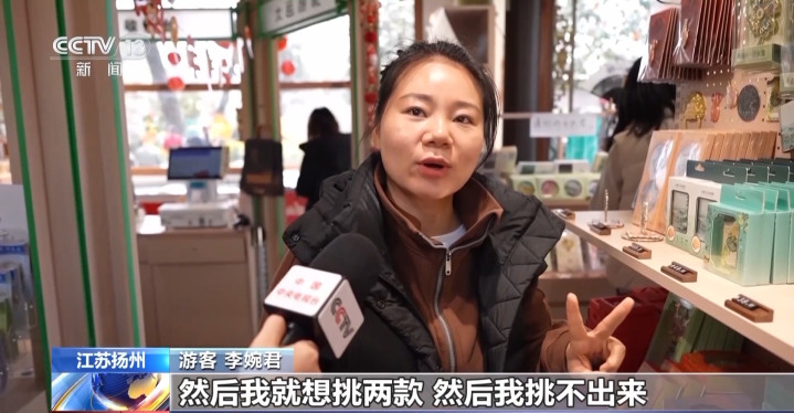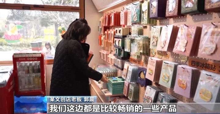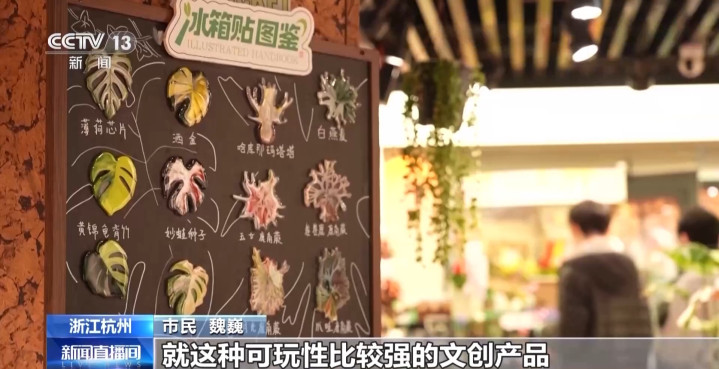 某文创店雇主郭晨:这些带花草的居品,王人是咱们这边相比畅销的居品,销售额比客岁涨了大约30%。