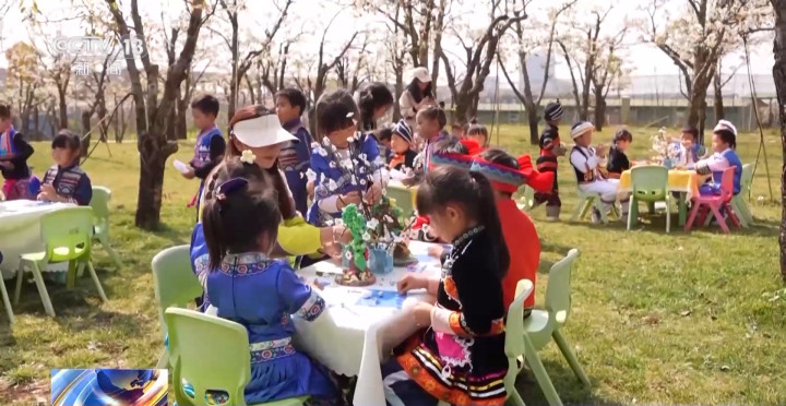 本年,当地围绕绽放的梨花,推出了特点研学游。孩子们用彩泥制作的梨树,也花开满枝。