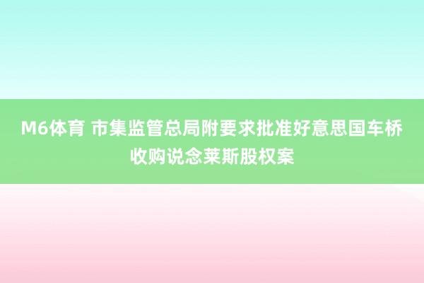 M6体育 市集监管总局附要求批准好意思国车桥收购说念莱斯股权案